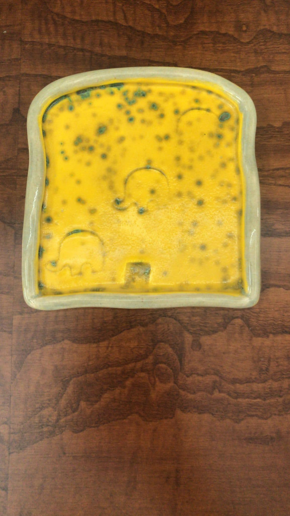 Our unique and handmade ceramic plate. Its charming and cute design will give your breakfast table a cozy and warm touch. The toast-shaped plate is handcrafted from high-quality ceramic, making it durable and perfect for everyday use. Its textured surface and warm, earthy colors will make you feel like you're enjoying breakfast in a cozy café. Each plate is handmade, so no two are exactly alike, making your breakfast experience unique and one-of-a-kind. Add some charm to your breakfast routine with our unique and handmade ceramic toast bread style breakfast plate. It's the perfect way to start your day with a smile! Hand-wash is recommended. Take care of sudden temperature changes. We have coupon for shoppers that make the review with 5 stars!