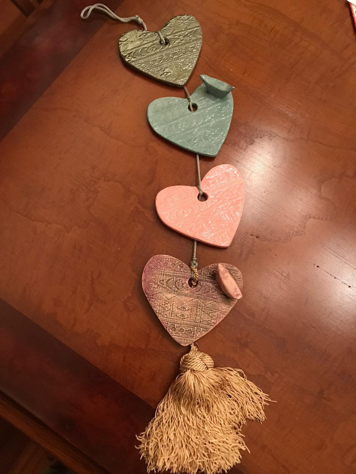 This wall hanging is a great compliment to your decor. The hearts are handmade from ceramic. It is handmade and unique. It is a lovely bohemian gift for someone special and will certainly add a touch of coastal charm to any home/outdoor/garden all year round!
