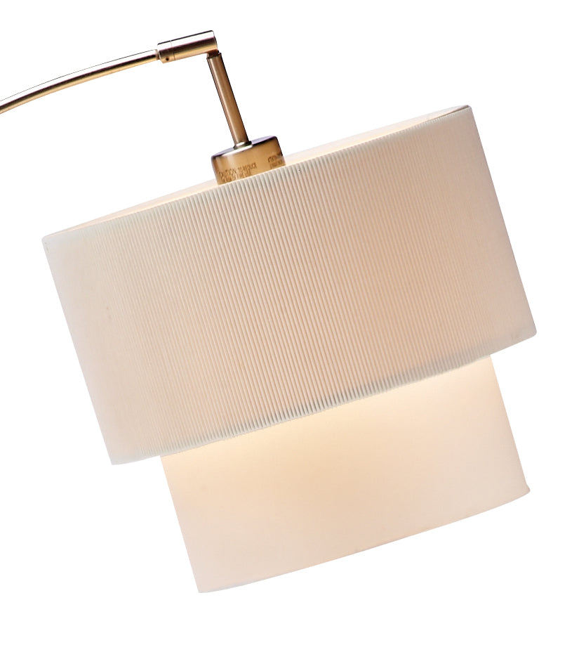Add a perfect blend of style and functionality to your home with this 71-inch silver adjustable arched floor lamp featuring a white and natural fabric drum shade. Designed with a sleek brushed finish and a sturdy metal frame, this lamp offers both durability and timeless appeal.
