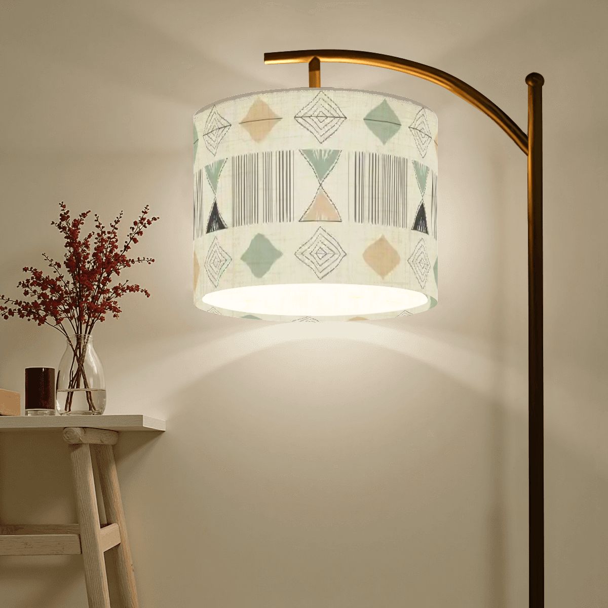 Designed to bring soft light and a calm mood into your space, this custom floor lamp blends comfort and modern style. The printed linen shade gently diffuses light, making it perfect for quiet evenings and everyday living.