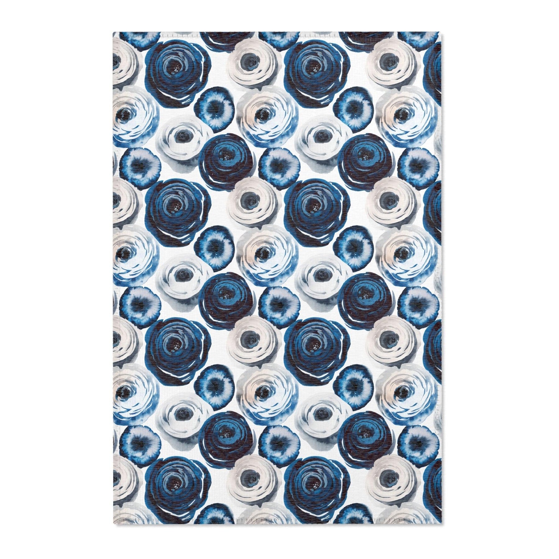 Transform your space with this beautiful blue area rug featuring a big flower pattern. Perfect for adding a touch of elegance to your room decor. Ideal for home decor enthusiasts looking for a vibrant pop of color.