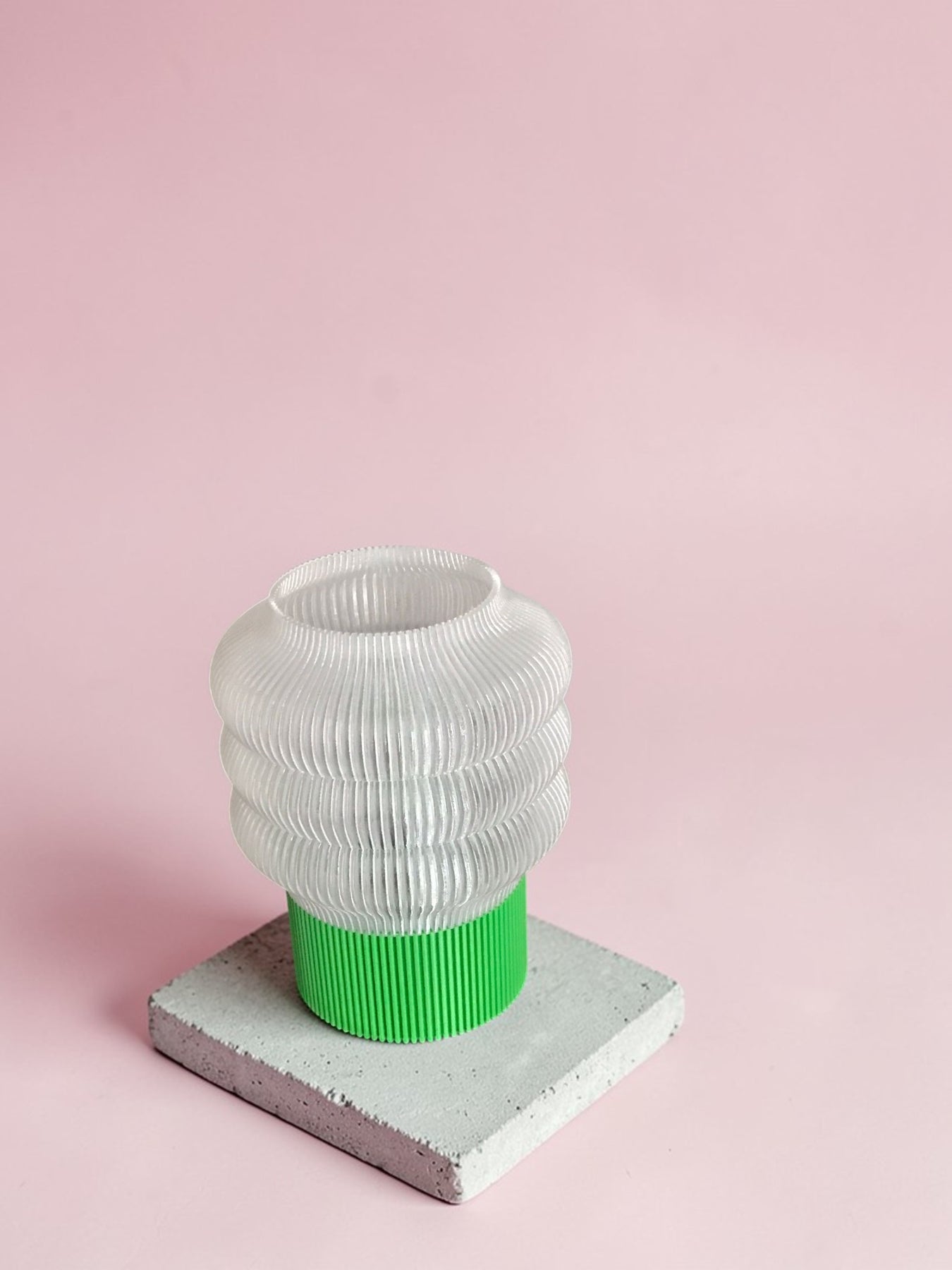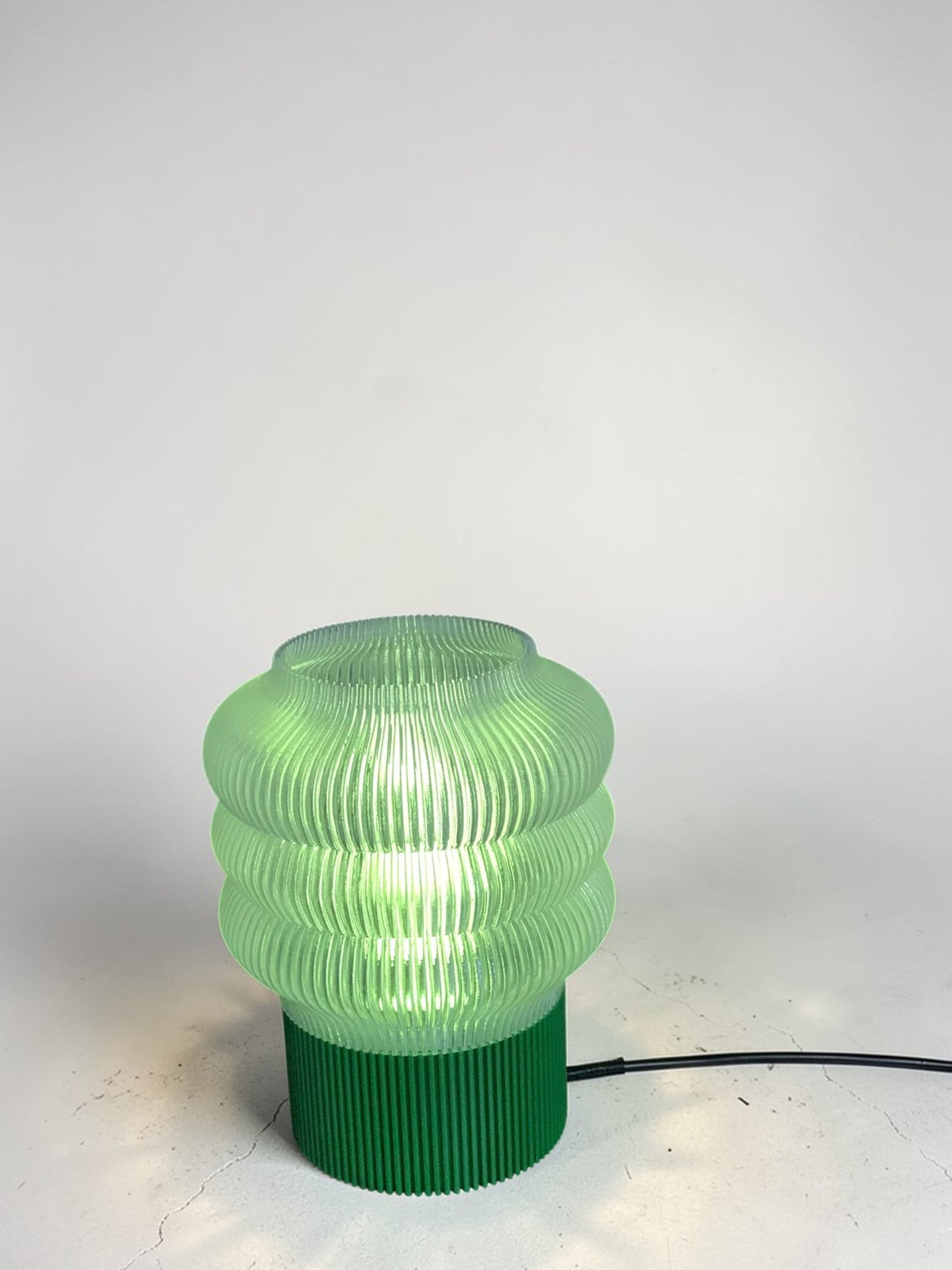 Each piece is carefully 3D printed using eco-friendly PLA, a plant-based material that is lightweight, durable, and environmentally conscious. The layered texture created during the printing process gives the lamp its distinctive look, making every piece slightly unique.
