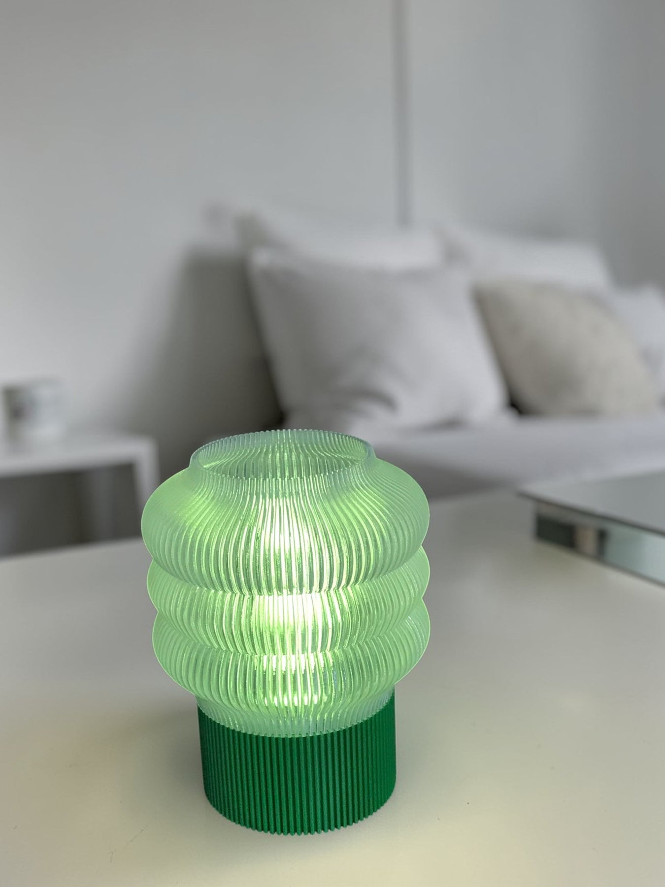 ✨ Soft Ambient Lighting – The transparent design diffuses light beautifully, creating a warm, cozy atmosphere. ✨ Minimalist & Retro Inspired – A perfect blend of modern design and vintage charm. ✨ Eco-Friendly Material – Made from sustainable PLA bioplastic. ✨ Unique 3D Printed Texture – Subtle layered details give the lamp a distinctive aesthetic. ✨ Versatile Decor Piece – Ideal for bedrooms, living rooms, desks, and reading corners.